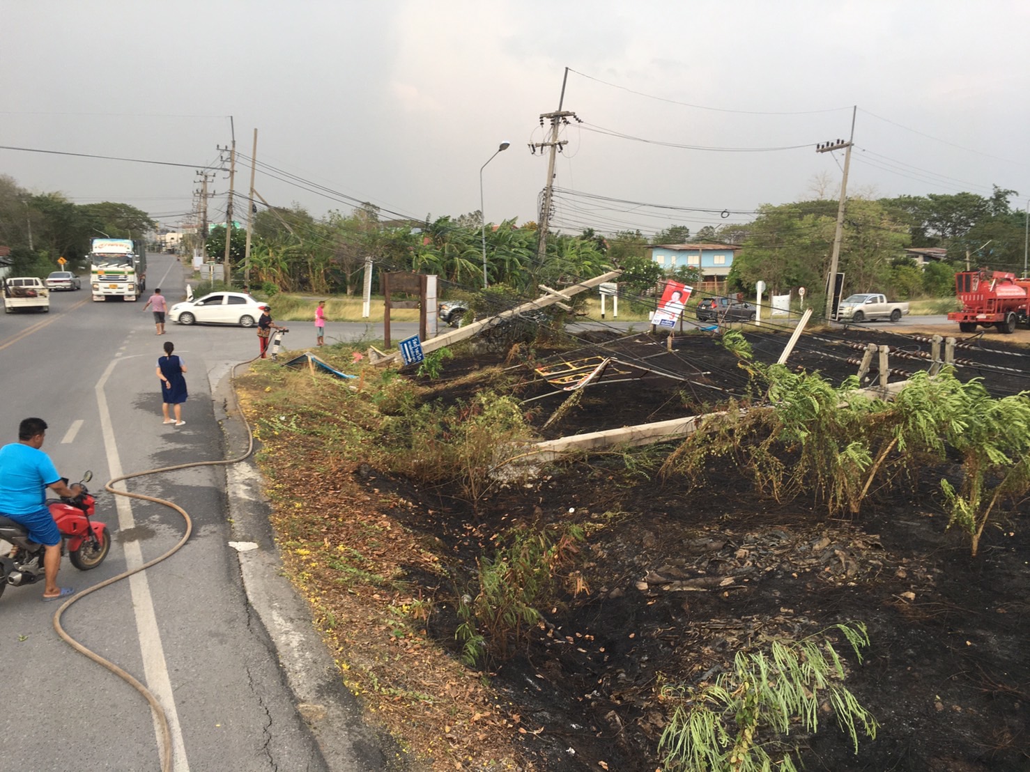 พายุพัดแรงมีเสาไฟล้ม