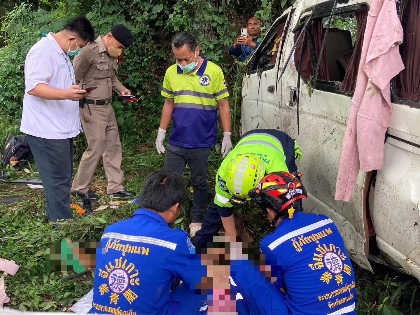 ศูนย์อำนวยการความปลอดภัยทางถนนจังหวัดเลย ขอรายงานอุบัติเหตุทางถนน ดังนึ้ เมื่อวันที่ 31 ตุลาคม 2568 เวลา 07.36 น. โดยการอำนวยการของนายชัยพจน์ จรูญพงศ์ ผู้ว่าราชการจังหวัดเลย /ผู้อำนวยการศูนย์อำนวยการความปลอดภัยทางถนนจังหวัดเลย ได้รับรายงานอุบัติเหตุทางถนนรถรับส่งนักเรียนโรงเรียนชุมแพศึกษา ซึ่งเดินทางมารับนักเรียนในเขตพื้นที่ตำบลผานกเค้า อำเภอภูกระดึง จังหวัดเลย เกิดอุบัติเหตุชนกับรถเก๋ง ซึ่งขณะนั้นแซงรถตู้รับส่งนักเรียนขึ้นมาแล้วเสียหลักรถหมุน ทำให้รถตู้รับส่งนักเรียนชนกับรถเก๋ง เสียหลักพลิกคว่ำลงข้างทาง 1.สถานที่เกิดเหตุ - ใกล้เคียงกับบริเวณ เลยศาลปู่หลุบ ก่อนถึงศูนย์ไฟป่า ถนนมะลิวัลย์ ชุมแพ-เมืองเลย ตำบลนาหนองทุ่ม อำเภอชุมแพ จังหวัดขอนแก่น -รถเก๋ง ยี่ห้อ NISSAN ทะเบียน กพ 9403-ขอนแก่น เฉี่ยวชนรถตู้รับ-ส่ง นักเรียน -ยี่ห้อ TOYOTA ทะเบียน ขน 3181-กาฬสินธุ์ 2 ผู้บาดเจ็บและผู้เสียชีวิต มีผู้โดยสารเป็นนักเรียน 14 ราย - ผู้บาดเจ็บสีแดง 0 ราย - ผู้บาดเจ็บสีเหลือง 3 ราย - ผู้บาดเจ็บสีเขียว 0 ราย - ผู้เสียชีวิต 1 ราย (นายจักรพงศ์ วงษ์สุวรรณ อายุ 18 ปี นักเรียนโรงเรียนชุมแพศึกษา อยู่บ้านเลขที่ 290 หมู่ที่ 8 ตำบลห้วยส้ม อำเภอภูกระดึง จังหวัดเลย) - ผู้บาดเจ็บถูกนำตัวเข้ารับการรักษาที่โรงพยาบาลภูกระดึง อำเภอภูกระดึง จังหวัดเลย (แพทย์ให้กลับบ้านแล้ว) 3.หน่วยงานเข้าให้ความช่วยเหลือ - สภ.ชุมแพ - กู้ภัยชุมแพ จีแซเกาะ - รพ.ชุมแพ - ฝ่ายปกครองอำเภอชุมแพ - นายอำเภอภูกระดึงเข้าเยี่ยมผู้บาดเจ็บและประสานการให้ความช่วยเหลือ ที่ รพ.ภูกระดึง 4 สาเหตุการเกิดอุบัติเหตุ - อยู่ระหว่างการตรวจสอบ