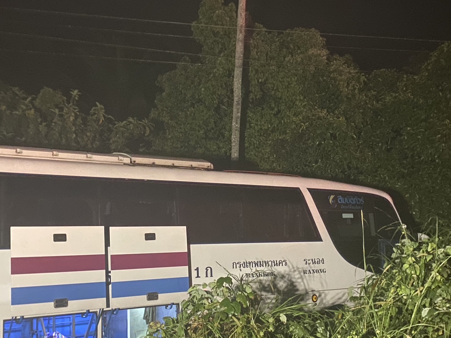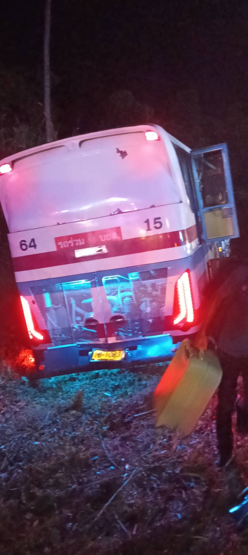 1. วันที่ 13 พฤศจิกายน 2568 เวลา 03.17 น. เกิดอุบัติเหตุรถร่วม บขส. สมบัติทัวร์ชนกับรถกระบะ 2. สถานที่เกิดเหตุ : หลัก กม. 29 ถนนชุมพร-ระนอง เลยทางเข้าบ้านในง่วม ไปทางระนอง ประมาณ 500 เมตร ก่อนถึงโค้งท่าสาน หมู่ที่ 7 ตำบลวังใหม่ อำเภอเมืองชุมพร จังหวัดชุมพร - รถทัวร์เดินทางจากกรุงเทพปลายทางจังหวัดระนอง มีผู้โดยสารบนรถทัวร์ 21 ราย พขร. 2 ราย พนักงาน 1 ราย - รถกระบะมีผู้โดยสาร 4 รา 3. อุบัติเหตุดังกล่าวทำให้ผู้บาดเจ็บ จำนวน 4 ราย (ผู้โดยสารในรถกระบะ) ดังนี้ 3.1 นายสิทธิชัย ฉิมพลี อายุ 46 ปี (Admid รพ.วิรัชศิลป์) 3.2 นายบุญธรรม ภู่จีน อายุ 37 ปี 3.3 ดช.วิศรุต ฉิมพลี อายุ 10 ปี (admit รพ.วิรัชศิลป์) 3.4 ดช.ศุภณัฐ พิศงามอายุ 14 ปี (admid รพ.ชุมพร) - หน่วยงานเข้าช่วยเหลือ มูลนิธิชุมพรการกุศลสงเคราะห์ 4. สาเหตุการเกิดอุบัติเหตุอยู่ระหว่างการสอบสวนของเจ้าหน้าที่ตำรวจ และเจ้าหน้าขนส่งจังหวัดชุมพร