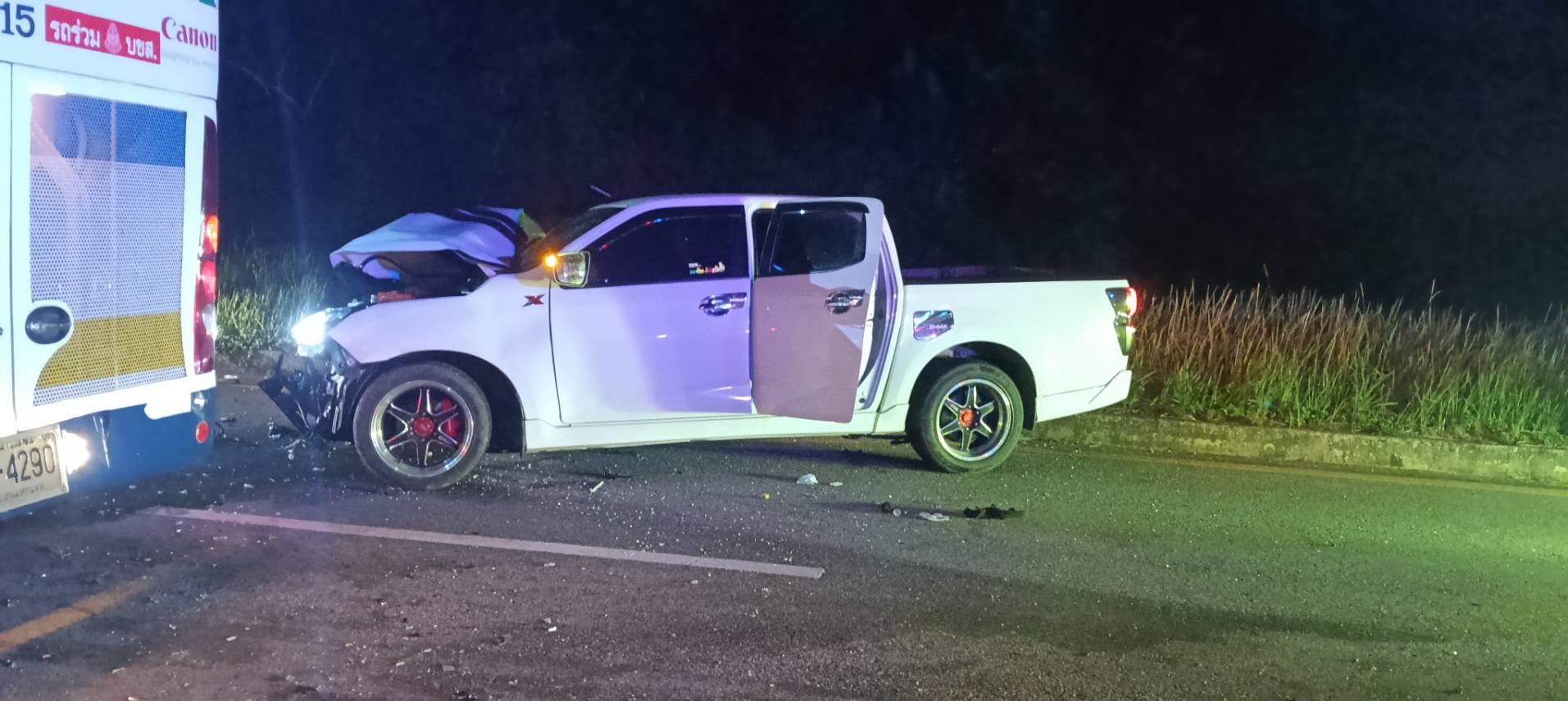 เกิดอุบัติเหตุรถร่วม บขส. สมบัติทัวร์ชนกับรถกระบะ