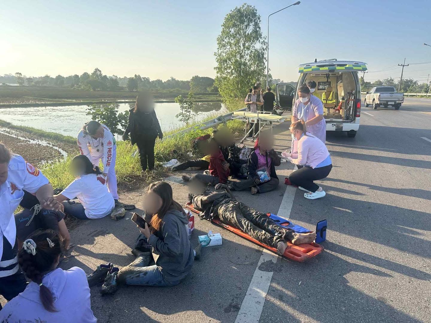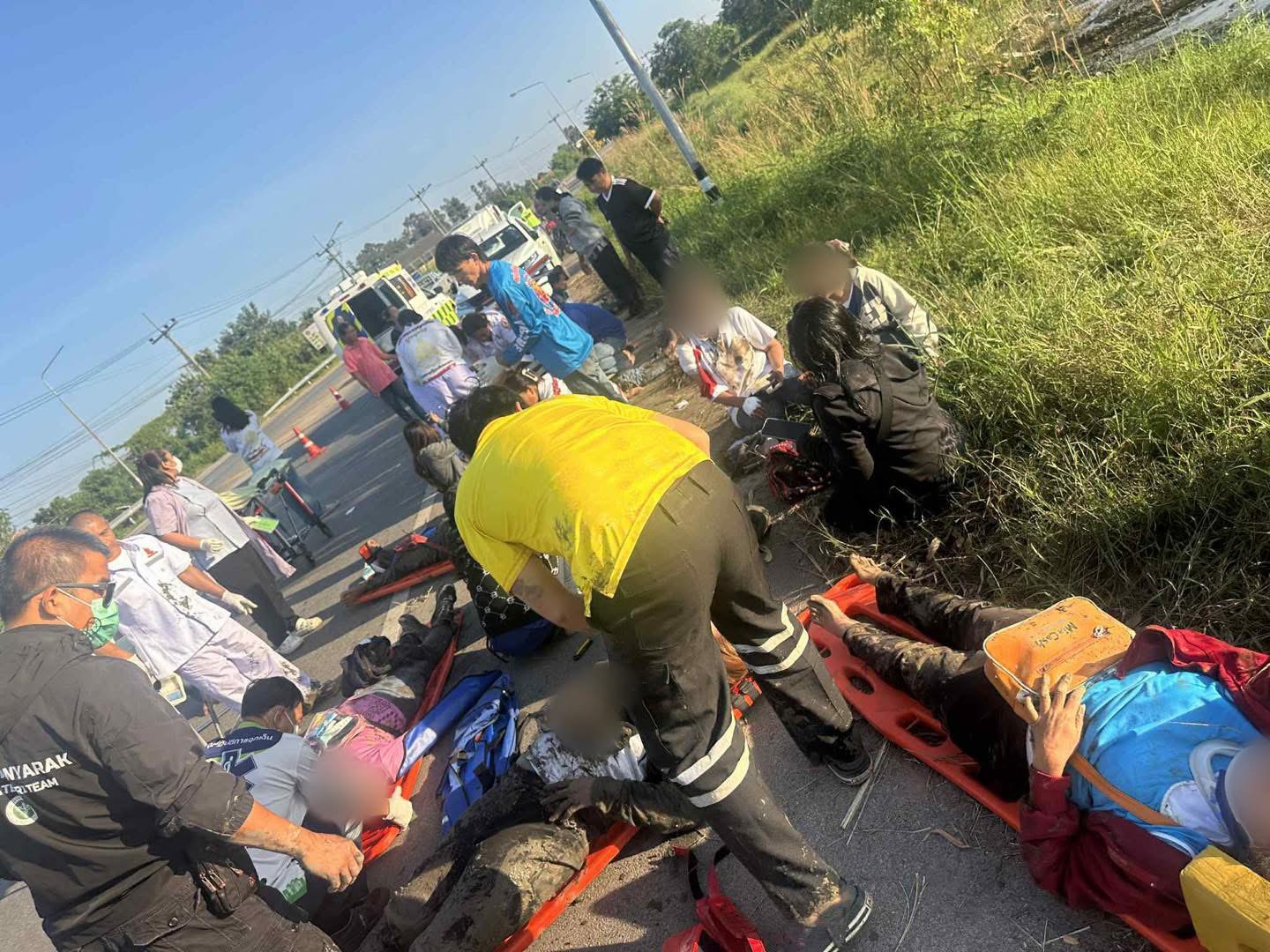 1. วัน เวลา และสถานที่เกิดเหตุเมื่อวันที่ 14 พฤศจิกายน 2568 เวลา 07.00 น. สถานีตำรวจภูธรเสลภูมิได้รับแจ้งเหตุอุบัติเหตุรถบัสรับ–ส่งพนักงานพลิกคว่ำ บนถนนสาย โพนทอง–ร้อยเอ็ด บริเวณ ทางโค้งบ้านดอนกอก หมู่ 10 ตำบลเกาะแก้ว อำเภอเสลภูมิ จังหวัดร้อยเอ็ด ซึ่งเป็นจุดเสี่ยงอุบัติเหตุที่มีทางโค้งและทัศนวิสัยจำกัดในช่วงเช้า 2. ลักษณะยานพาหนะและการปฏิบัติงานก่อนเกิดเหตุยานพาหนะเป็นรถบัสรับ–ส่งพนักงานของโรงงานเย็บผ้าในอำเภอจังหาร ซึ่งรับคนงานตามเส้นทางจาก อำเภอโพนทอง – ตำบลเกาะแก้ว – โรงงานในอำเภอจังหาร จากการสอบถามเบื้องต้น คนขับให้ข้อมูลว่า หักหลบรถพ่วงที่โผล่ออกมากะทันหัน ทำให้รถเสียหลักและพลิกคว่ำลงข้างทาง 3. สภาพพื้นที่เกิดเหตุจุดเกิดเหตุเป็น ทุ่งนาข้างทาง ลักษณะถนนเป็นทางโค้ง ความลาดเอียงสูง เสี่ยงต่อการเสียหลักหากขับด้วยความเร็วหรือจำเป็นต้องหักหลบกะทันหัน 4. จำนวนผู้ได้รับบาดเจ็บพบเบื้องต้นบาดเจ็บ 20 ราย สีแดง 1 ราย นำส่งรพ.ธวัชบุรี สีเหลือง 6ราย นำส่งรพ.เสลภูมิ สีเหลือง 5ราย สีเขียว 8ราย เป็นพนักงานของโรงงานเย็บผ้า หน่วยกู้ชีพ–กู้ภัยจากพื้นที่ใกล้เคียงได้เข้าถึงเหตุการณ์อย่างรวดเร็ว ให้การปฐมพยาบาล ณ จุดเกิดเหตุ แล้วนำส่ง โรงพยาบาลธวัชบุรี เพื่อทำการรักษาต่อ 5. การตอบสนองและการปฏิบัติงานของหน่วยงานที่เกี่ยวข้อง • หน่วยกู้ชีพ–กู้ภัย: เข้าช่วยเหลือทันทีหลังรับแจ้งเหตุ คัดแยกผู้บาดเจ็บ (triage) ปฐมพยาบาล และลำเลียงผู้บาดเจ็บส่งโรงพยาบาล • รพ.ธวัชบุรี: ดำเนินการรับผู้บาดเจ็บทั้งหมด ประเมินอาการเบื้องต้น และให้การรักษาตามมาตรฐาน • สภ.เสลภูมิ: ตั้งจุดตรวจสอบ อำนวยความสะดวกด้านการจราจร และดำเนินการสอบสวนสาเหตุของอุบัติเหตุอย่างเป็นทางการ • สาธารณสุขอำเภอเสลภูมิ: ประสานข้อมูลผู้บาดเจ็บกับโรงพยาบาล รับทราบสถานการณ์เพื่อเฝ้าระวังภาระงานด้านการแพทย์ฉุกเฉินในพื้นที่ และจัดทำรายงานเสนอผู้บริหาร 6. ประเด็นทางสาธารณสุขและข้อพิจารณา • จำเป็นต้องติดตามภาวะแทรกซ้อนของผู้บาดเจ็บที่ถูกกระแทกหรือกระเด็นในอุบัติเหตุรถพลิกคว่ำ • จุดเกิดเหตุเป็นพื้นที่เสี่ยงซ้ำ ควรประสานองค์กรปกครองส่วนท้องถิ่นและหน่วยงานด้านทางหลวงเพื่อปรับปรุงความปลอดภัย เช่น ป้ายเตือน, ทำสันชะลอความเร็ว