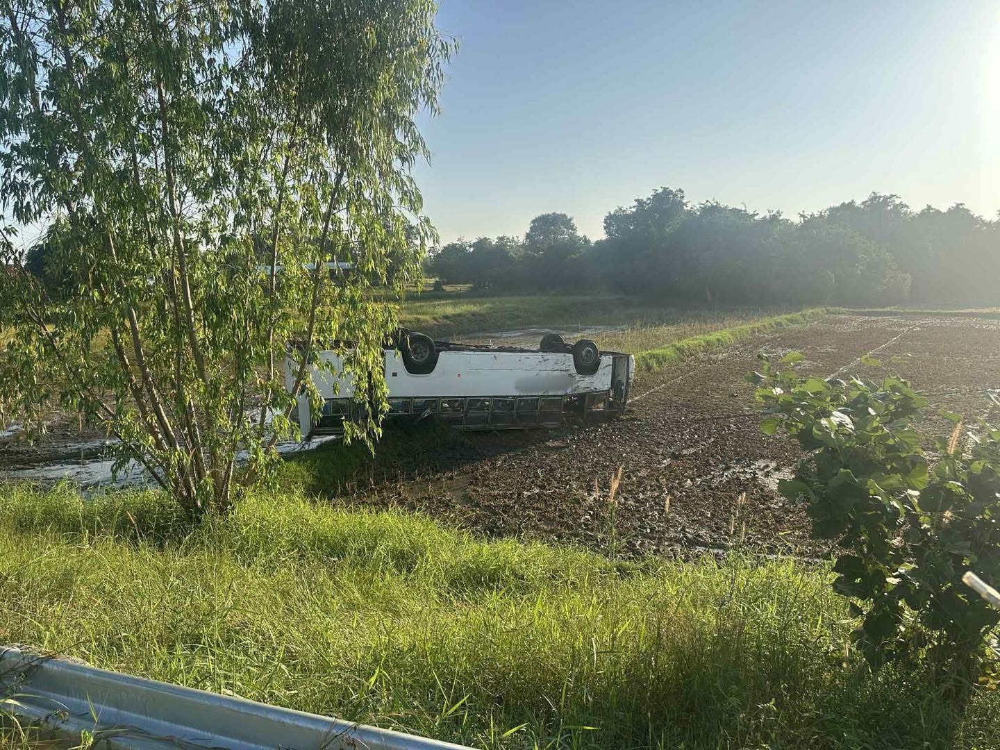 อุบัติเหตุรถบัสรับ–ส่งพนักงานพลิกคว่ำ