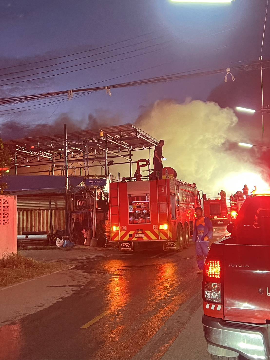 1. เมื่อวันที่ 20 พฤศจิกายน 2568 เวลา 07.15 น. ได้รับแจ้งจาก อบต.โคกขามว่า เมื่อเวลา 05.30 น. ได้เกิดเหตุเพลิงไหม้บริเวณ ห้องครัวภายในร้านธนกรพาณิชย์ ซึ่งเป็นร้านรับซื้อของเก่า ตั้งอยู่เลขที่ 43/370 หมู่ที่ 4 ตำบลโคกขาม อำเภอเมืองสมุทรสาคร จังหวัดสมุทรสาคร 2.ลักษณะเหตุการณ์: จากการตรวจสอบเบื้องต้นพบว่าเพลิงมีต้นเหตุ จากบริเวณห้องครัวภายในร้านดังกล่าว ก่อนลุกลามไปยังกองวัสดุต่าง ๆ ภายในพื้นที่ เจ้าหน้าที่ดับเพลิงได้สนับสนุนรถดับเพลิงเข้าควบคุม สถานการณ์ โดยเพลิงสร้างความเสียหายบางส่วน 3. การเข้าระงับเหตุ: อบต.โคกขาม ทม.พันท้ายนรสิงห์ และ ทต.นาดี ได้นำรถดับเพลิงพร้อมเจ้าหน้าที่เข้าระงับเหตุ และสามารถควบคุมเพลิง สงบเมื่อเวลา 06.40 น. 4. ความเสียหายและผู้ประสบเหตุ: จากการตรวจสอบเบื้องต้น ไม่พบผู้ได้รับบาดเจ็บหรือเสียชีวิต ส่วนมูลค่าความเสียหายอยู่ระหว่าง การตรวจสอบของหน่วยงานที่เกี่ยวข้อง 5. การให้ความช่วยเหลือเบื้องต้น: อบต.โคกขามได้ให้การช่วย เหลือตามอำนาจหน้าที่แล้ว 6. การดำเนินการต่อไป: สำนักงาน ปภ.จังหวัดสมุทรสาครจะประสาน หน่วยงาน ที่เกี่ยวข้องเข้าดำเนินการให้ความช่วยเหลือต่อไป