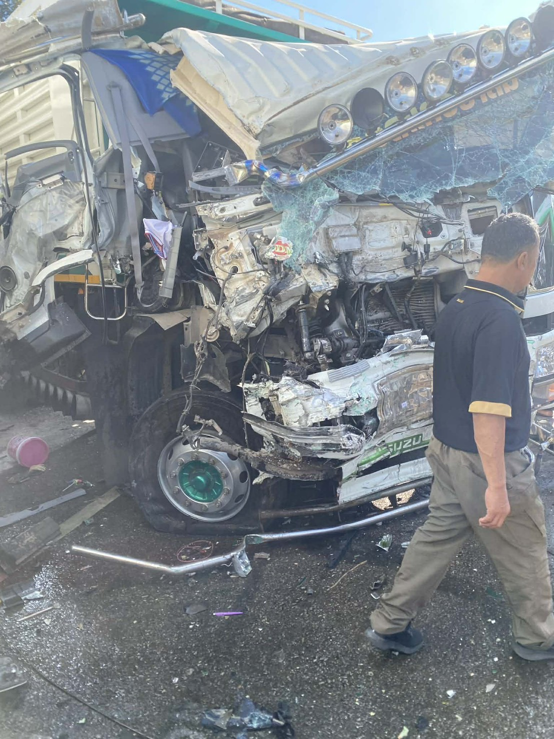 เกิดอุบัติเหตุทางถนนรถบัสโดยสาร 2 ชั้น เฉี่ยวชนกับรถพ่วง 18 ล้อ