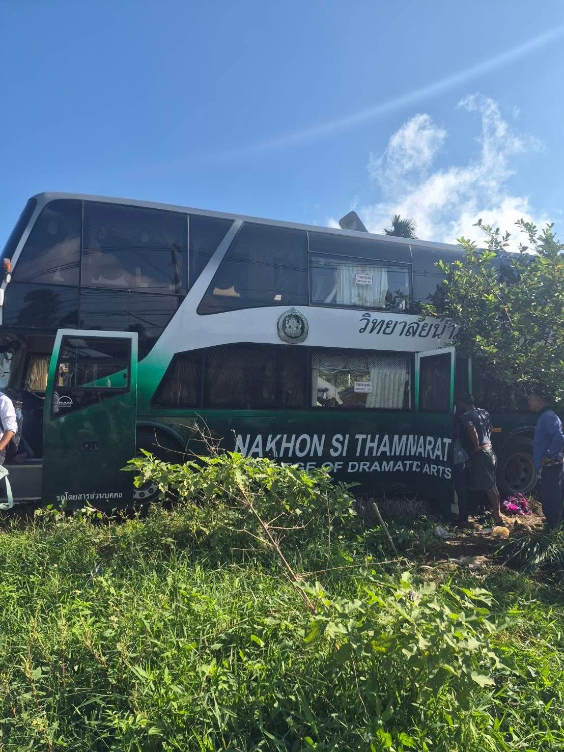 สำนักงานป้องกันและบรรเทาสาธารณภัยจังหวัดกระบี่/เลขานุการศูนย์อำนวยการความปลอดภัย ทางถนนจังหวัดกระบี่ รายงานอุบัติเหตุทางถนน (อุบัติเหตุน่าสนใจ) ดังนี้ 1. วัน เวลาที่เกิดเหตุ : วันนี้ วันที่ 18 ธันวาคม 2568 เวลาประมาณ 09.07 น. เกิดอุบัติเหตุทางถนนรถบัสโดยสาร 2 ชั้น มีผู้โดยสารประมาณ 40 คน (นักเรียนโรงเรียนนาฏศิลป์ มาจากจังหวัดนครศรีธรรมราช) เฉี่ยวชนกับรถพ่วง 18 ล้อ ทำให้มีผู้บาดเจ็บสาหัส (สีแดง) จำนวน 1 คน บาดเจ็บปานกลาง (สีเหลือง) 3 คน และบาดเจ็บเล็กน้อย (สีเขียว) 36 คน 2. สถานที่ : บริเวณถนนทางหลวงแผ่นดิน สายเขาพนม - ทุ่งใหญ่ บริเวณหน้าโรงเรียนบ้านบางเหียน ตำบลพรุเตียว อำเภอเขาพนม จังหวัดกระบี่ 3. การเข้าช่วยเหลือ : สายด่วน 1669 ประสานรถกู้ชีพองค์การบริหารส่วนตำบลสินปุน 1 คัน กู้ชีพโรงพยาบาลเขาพนม 2 คัน มูลนิธิประชาร่วมใจเขาพนม 1 คัน มูลนิธิประชาสันติสุขเขาพนม 1 คัน นำผู้บาดเจ็บส่งโรงพยาบาลเขาพนม