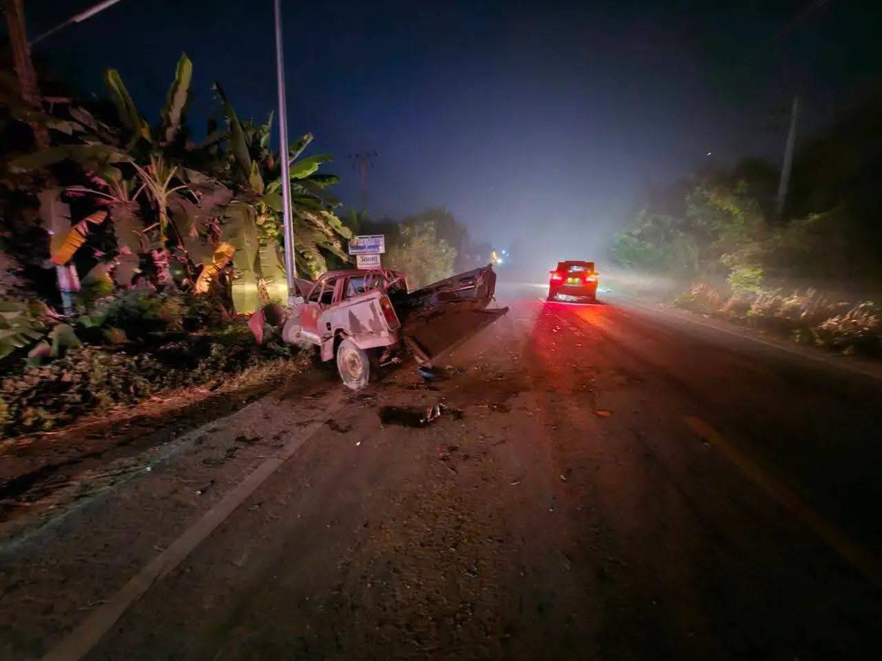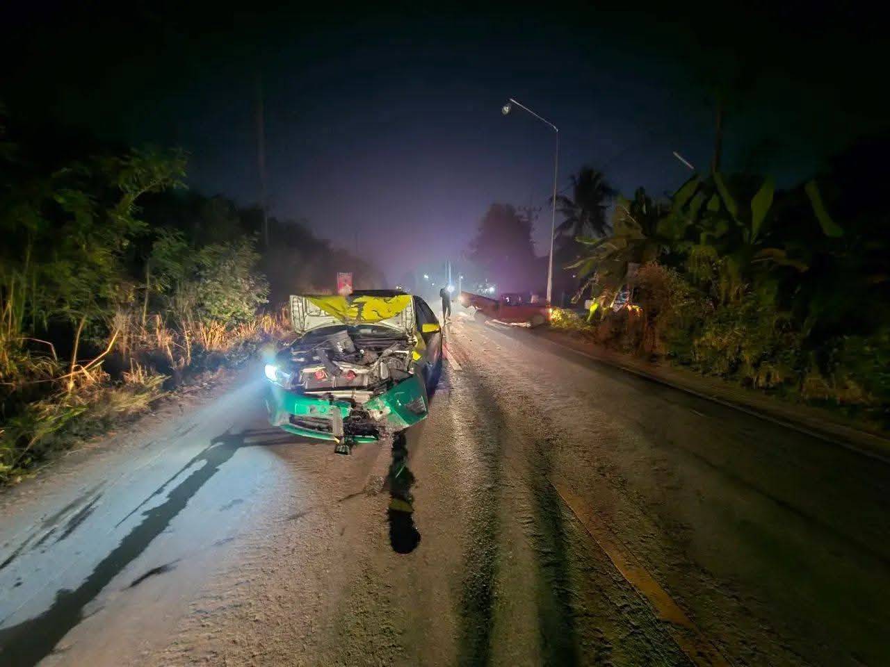 เกิดเหตุรถยนต์เก๋งชนกับรถกระบะ