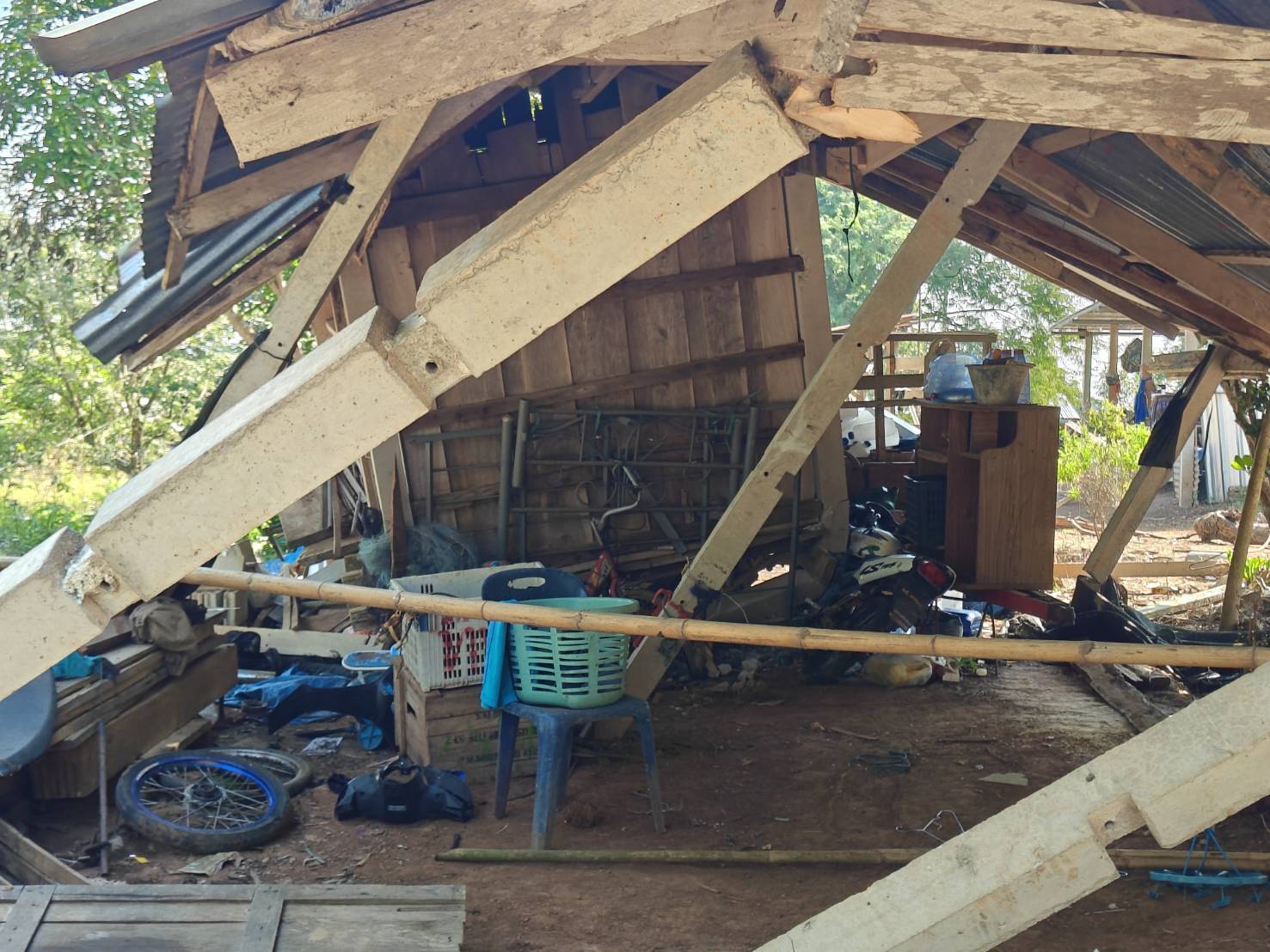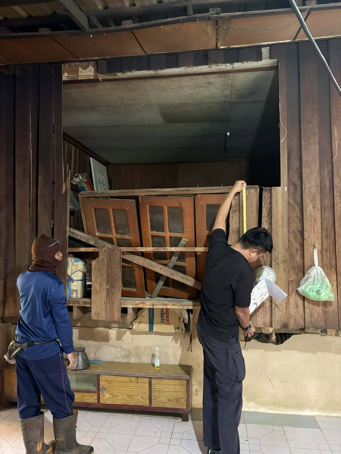 เกิดเหตุช้างป่าได้ลงมาหากิน ทำให้ที่พักอาศัยและยุ้งฉางได้รับความเสียหาย