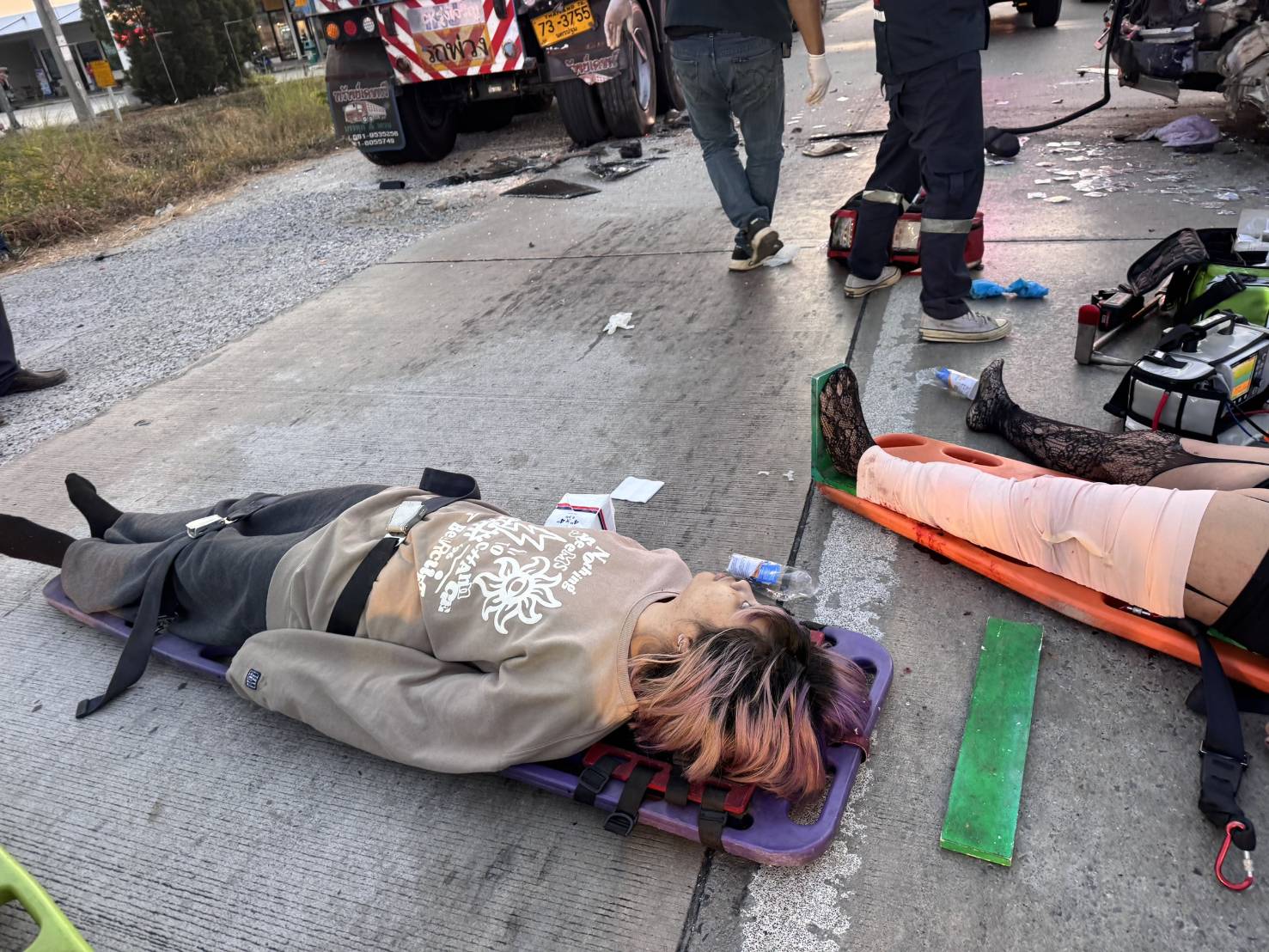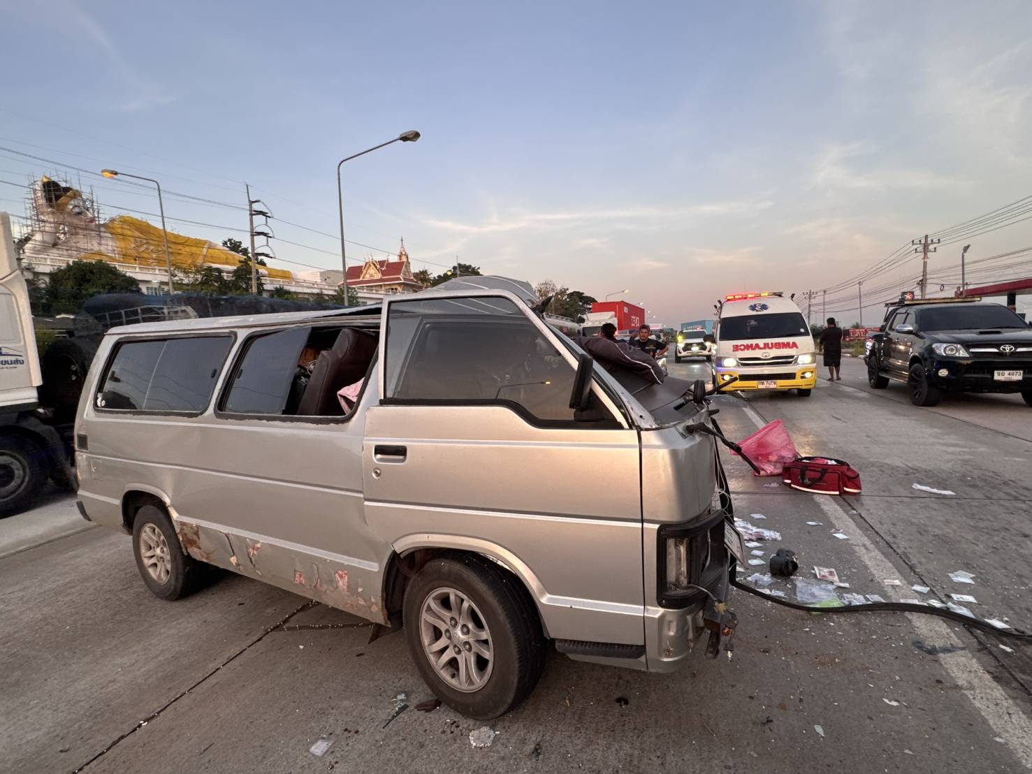 เรียน ผู้บังคับบัญชา วันที่ 10 มกราคม 2569 เวลา 07.10 น. ศปถ.จังหวัดระยอง ขอรายงานอุบัติเหตุรถยนต์ชนกับรถบรรทุก ณ บริเวณถนนสาย 36 (ฝั่งมุ่งหน้าระยอง) ตรงข้ามวัดหนองหว้า ตำบลมะขามคู่ อำเภอนิคมพัฒนา จังหวัดระยอง รายละเอียดดังนี้ 1. สถานการณ์สาธารณภัย - วันที่ 10 มกราคม 2569 เวลา 07.10 น. เกิดเหตุรถยนต์ยี่ห้อโตโยต้า หมายเลขทะเบียน ฬย -854 กรุงเทพมหานคร ชนกับรถบรรทุก หมายเลขทะเบียน 74 - 7197 สมุทรปราการ (ส่วนหัว) หมายเลขทะเบียน 73 - 3755 นครปฐม (ส่วนหาง) บริเวณ บริเวณถนนสาย 36 (ฝั่งมุ่งหน้าระยอง) ตรงข้ามวัดหนองหว้า ตำบลมะขามคู่ อำเภอนิคมพัฒนา จังหวัดระยอง โดยรถบรรทุกได้จอดอยู่บริเวณไหล่ทาง ด้านหน้าสถานีเชื้อเพลิงเชลล์ ซึ่งตั้งอยู่ฝั่งตรงข้ามกับวัดหนองหว้า มาตั้งแต่ในช่วงกลางคืนที่ผ่านมา แล้วต่อมาในเวลาประมาณ 07.00 น. ปรากฏว่า ได้มีรถยนต์ วิ่งแล่นพุ่งเข้าชนที่บริเวณด้านท้ายฝั่งขวาอย่างรุนแรง 2. สถานที่เกิดเหตุ - บริเวณถนนสาย 36 (ฝั่งมุ่งหน้าระยอง) ตรงข้ามวัดหนองหว้า ตำบลมะขามคู่ อำเภอนิคมพัฒนา จังหวัดระยอง 3. ความเสียหาย - มีผู้บาดเจ็บ 2 ราย และเสียชีวิต 1 ราย รายละเอียด ดังนี้ 1. น.ส.จิระภาพร รื่นกลิ่น (ได้รับบาดเจ็บ) 2. น.ส.สาธิตา กรึกกระโทก (ได้รับบาดเจ็บ) 3. น.ส.ฐานิกา ไชยแสน (เสียชีวิต) 4. การให้ความช่วยเหลือ - ศปถ.จังหวัดระยอง ภายใต้การอำนวยการของ นายไตรภพ วงศ์ไตรรัตน์ ผอ.ศปถ.จังหวัดระยอง พร้อมด้วยหน่วยงานบูรณาการที่เกี่ยวข้อง อาทิ สนง.ปภ.จังหวัดระยอง สภ.นิคมพัฒนา มูลนิธิสว่างพรกุศลระยอง อำนวยการประสานการปฏิบัติ 5. สถานการณ์ปัจจุบัน - เบื้องต้น สภ.นิคมพัฒนา ได้ดำเนินการตรวจสอบสถานที่เกิดเหตุ ถ่ายภาพ และสอบปากคำพยานแวดล้อมเบื้องต้น 6. สาเหตุอยู่ระหว่างการสอบสวนของเจ้าหน้าที่ - สาเหตุอยู่ระหว่างการสอบสวนของเจ้าหน้าที่ จึงเรียนมาเพื่อโปรดทราบ สนง.ปภ.ระยอง