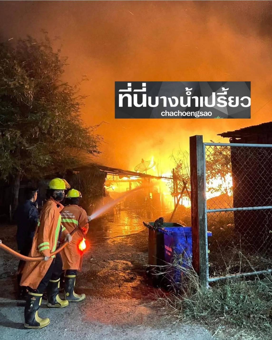 ไฟไหม้บ้านเรือนบางปะกง ลามวอด 4 หลัง หนีตายนับ 10 ชีวิต เมื่อเวลา 21.30 น. วันที่ 22 ม.ค.68 พ.ต.ต.ณรงค์ศักดิ์ กันจิน๊ะ พนักงานสอบสวน สภ.บางปะกง พร้อมหน่วยกู้ภัยฉะเชิงเทรา และเจ้าหน้าที่ดับเพลิง ได้รับแจ้งจากประชาชน เกิดเหตุเพลิงไหม้บ้านเรือนประชาชน บริเวณหลังโรงไฟฟ้าบางปะกง หมู่ 7 ต.ท่าข้าม อ.บางปะกง จ.ฉะเชิงเทรา นางสมจิตร พันธุ์สุวรรณ นายกเทศมนตรีตำบลท่าข้าม ตรวจสอบที่เกิดเหตุเป็นบ้านไม้ชั้นเดียว ปลุกติดต่อกันหลายหลัง ถูกเพลิงลุกไหม้อย่างรุนแรง 4 หลัง จึงนำรถดับเพลิงจากเทศบาลตำบลท่าข้าม และใกล้เคียงนับ 10 คัน เข้าสกัดการลุกลาม แต่เนื่องจากเป็นบ้านไม้ ที่เป็นเชื้อเพลิงอย่างดี บวกกับมีลมแรง สภาพอากาศแห้งในช่วงฤดูหนาว ทำให้ไฟลุกลามอย่างรวดเร็ว หลังเพลิงสงบ พบว่าบ้านที่อยู่ใกล้กัน 4 หลัง พร้อมด้วยทรัพย์สิน ข้าวของเครื่องใช้ ถูกไฟไหม้เสียหายทั้งหมด โดยไม่มีผู้บาดเจ็บหรือเสียชีวิต ส่วนสาเหตุอยู่ระหว่างการสอบสอบสวน และผลตรวจสอบจาก ตำรวจ กก.พฐ.ฉะเชิงเทรา ในวันรุ่งขึ้น เบื้องต้นเทศบาลตำบลท่าข้าม ได้เข้าดูแลรับตัวคนในครอบครัวของผู้เสียหายจำนวน 10 คนไปอาศัยพักพิงที่เทศบาลฯ เพื่อดำเนินการช่วยเหลือเยียวยาต่อไป -------------------------------------------------------------------