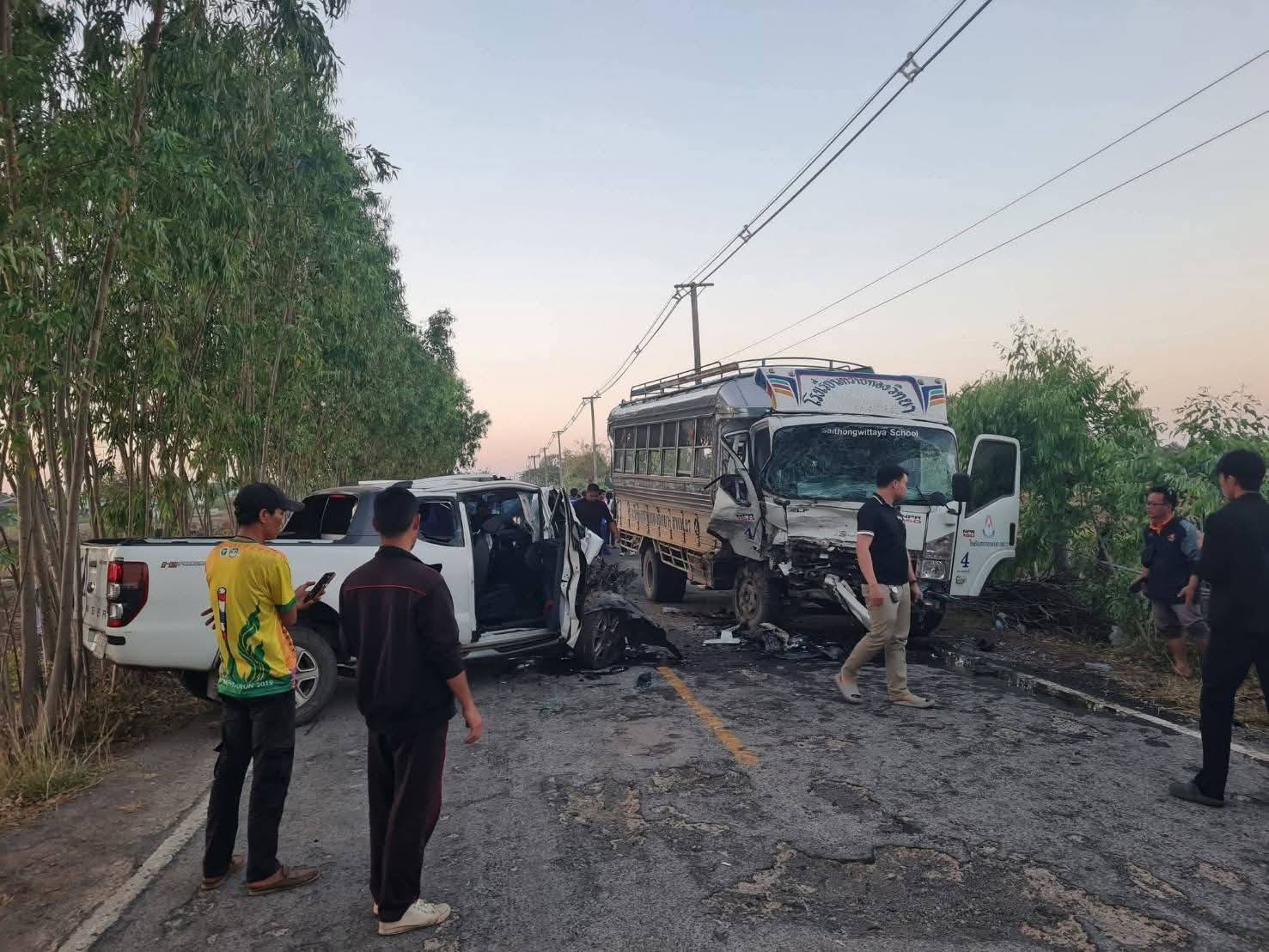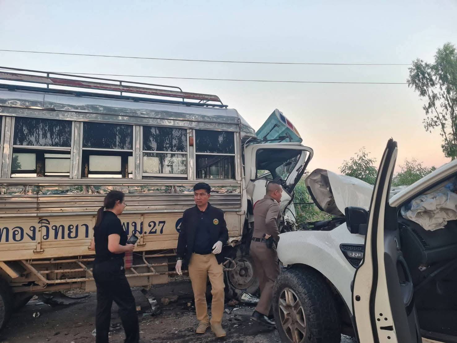 เกิดเหตุรถกระบะชนกับรถรับส่งนักเรียน