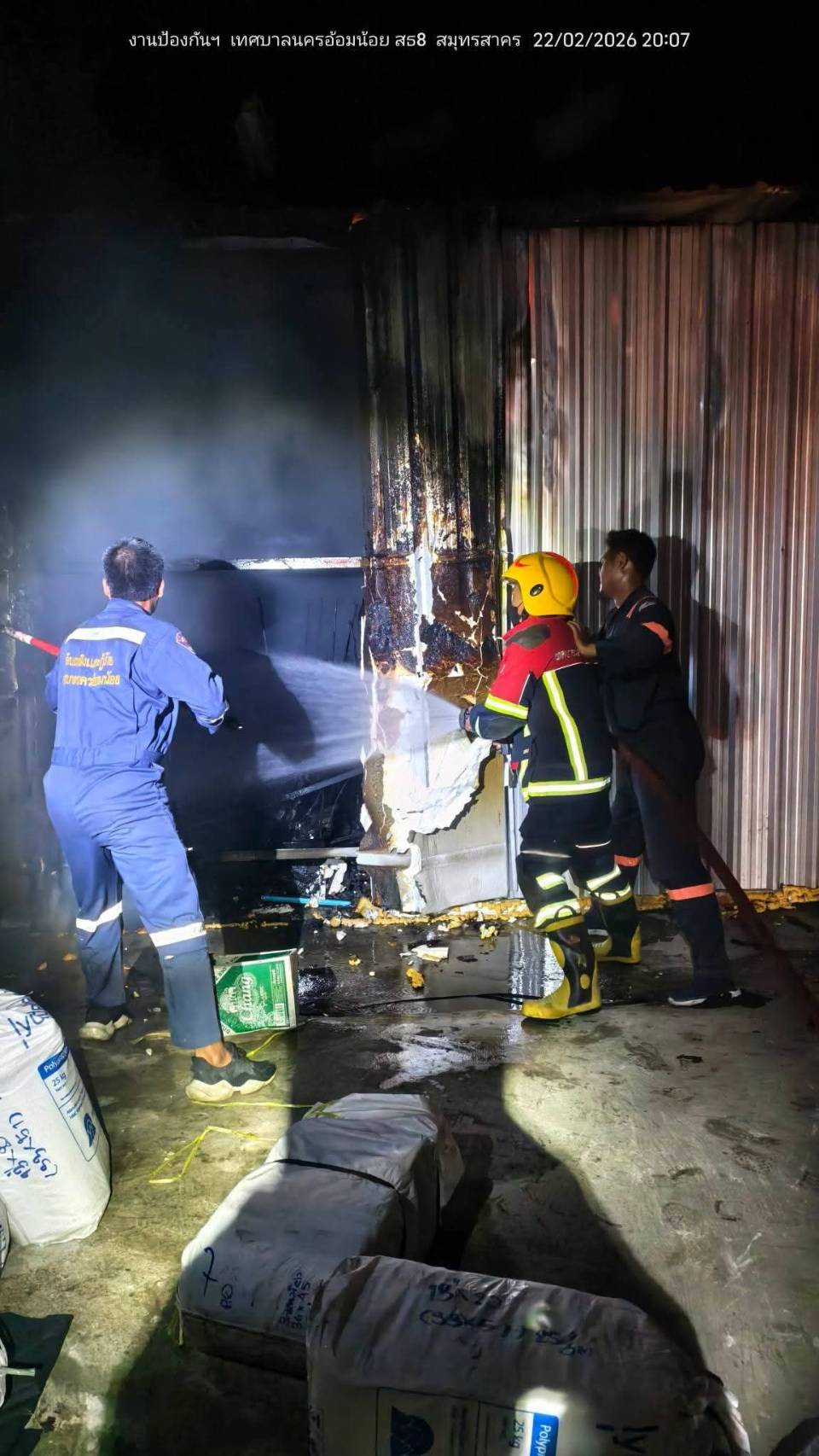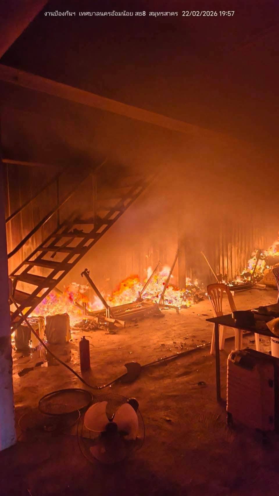 เพลิงไหม้โรงงานกัญชา ซอยเพชรเกษม 91 เพลิงสงบแล้ว ไม่มีรายงานผู้บาดเจ็บ . วันที่ 21 กุมภาพันธ์ 2569 เวลา 19.40 น. รับแจ้งเหตุเพลิงไหม้ บริษัท เอฟซี เทร์ ทรา จำกัด เลขที่ 62/13 ม.3 ต.อ้อมน้อย อ.กระทุ่มแบน จ.สมุทรสาคร โดยเปลวเพลิงและกลุ่มควันพวยพุ่งออกจากตัวอาคาร สร้างความตื่นตกใจให้กับประชาชนในพื้นที่ใกล้เคียง . ห.ลังรับแจ้งเหตุ เจ้าหน้าที่ดับเพลิงพร้อมรถน้ำจากสถานีใกล้เคียงเร่งเข้าระงับเหตุ ใช้เวลาควบคุมเพลิงประมาณระยะหนึ่ง ก่อนสามารถควบคุมสถานการณ์ไว้ได้ โดยขณะนี้เพลิงสงบแล้ว . เบื้องต้นยังไม่มีรายงานผู้ได้รับบาดเจ็บหรือเสียชีวิต ส่วนความเสียหายอยู่ระหว่างการตรวจสอบ และเจ้าหน้าที่จะเข้าตรวจสอบหาสาเหตุของการเกิดเพลิงไหม้ต่อไป -------------------------------------------------------------------
